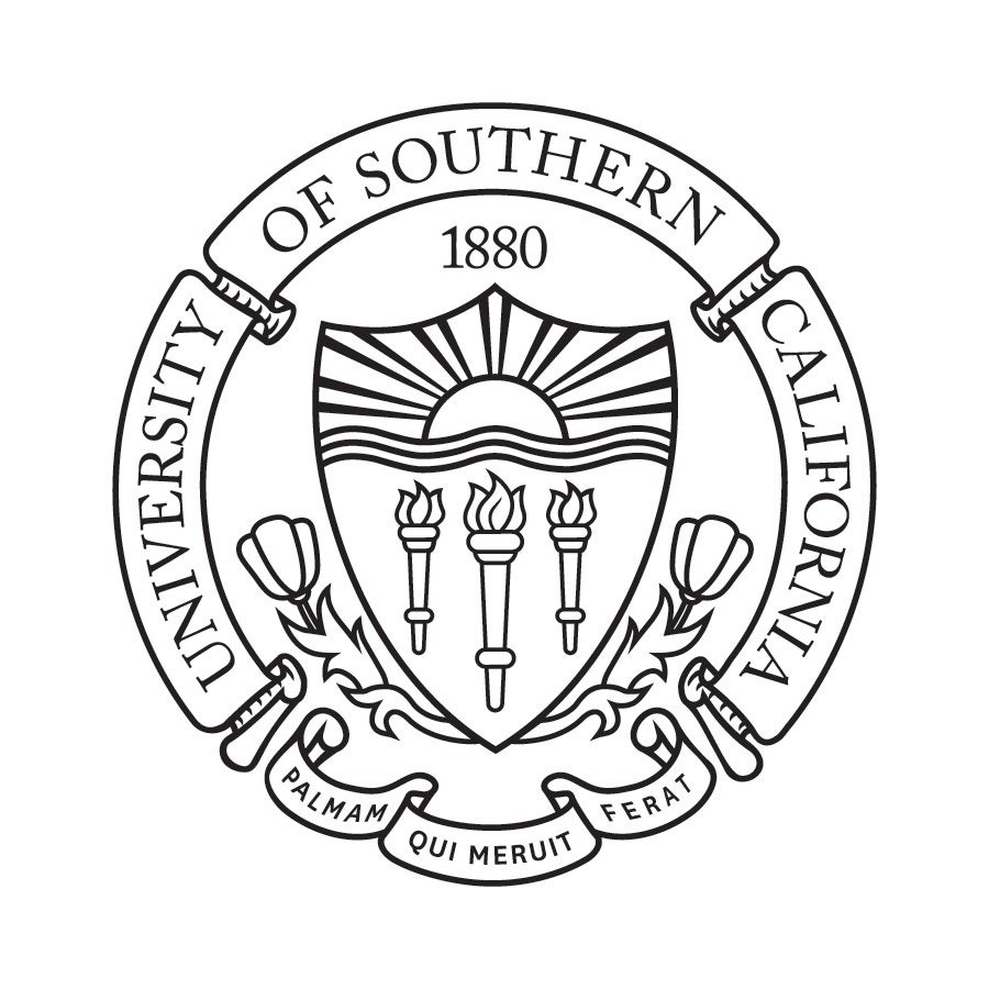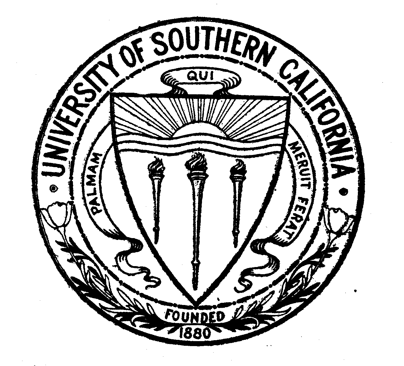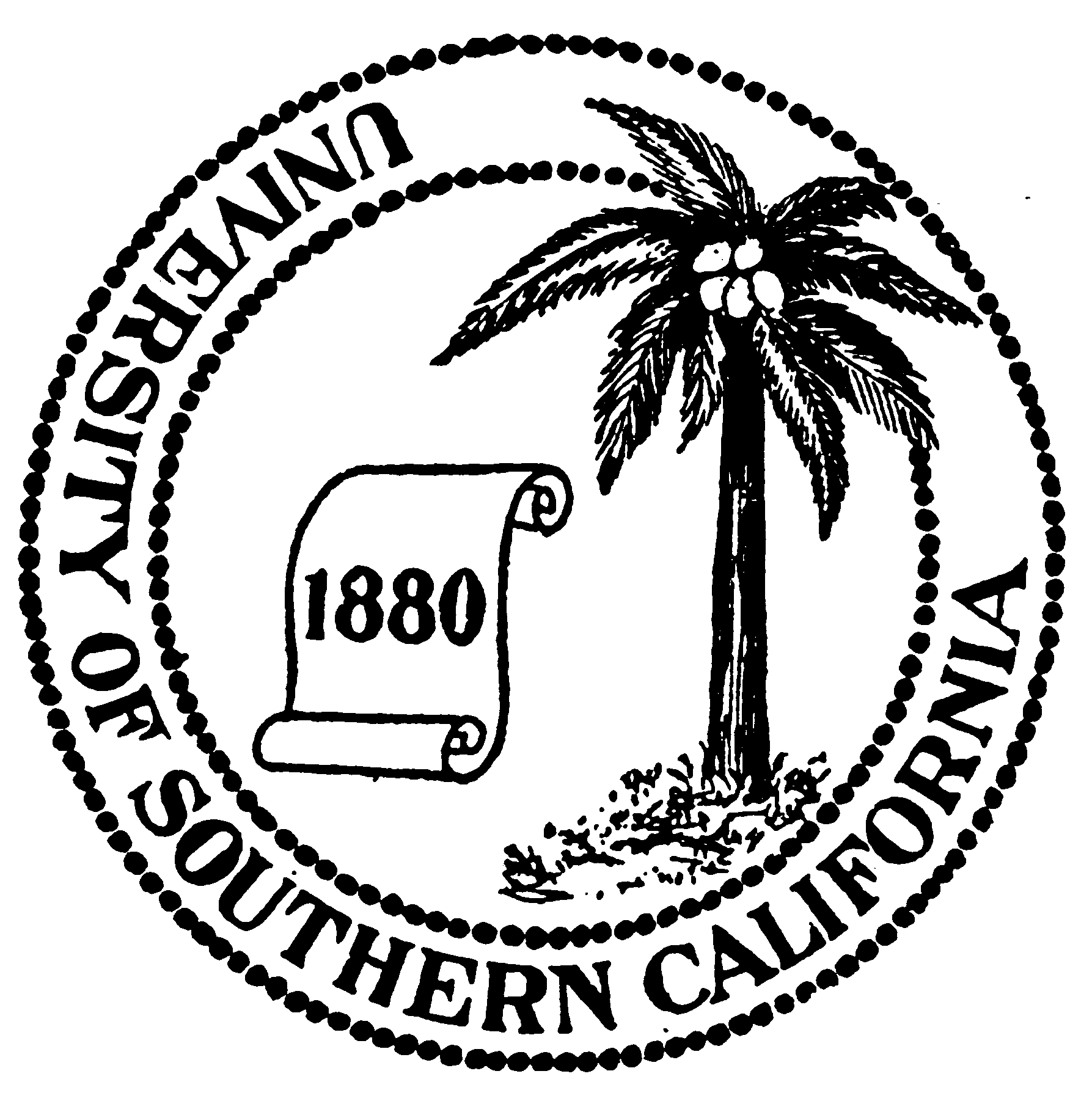 The University of Southern California’s original seal was developed in 1884 to emboss the diplomas of the school’s first graduating class. This seal depicted the year of USC’s founding (1880) emblazoned on a scroll next to a palm tree (in heraldry, a symbol of righteousness and victory), with the name of the institution inscribed around the border.